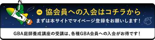 | 会員特典 | ①講座最大30%割引 ②紹介制度への参加 ③GBAイベントの参加権利 ④GBA主催セミナー等の参加割引 ⑥業界求人情報の発信 ⑨Good Garden Awardへのエントリー権 |